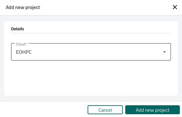 For ESA HPC only one region is active in the Dashboard, so there are no other regions to extend the project to. Therefore, click Cancel to return to the Dashboard interface.