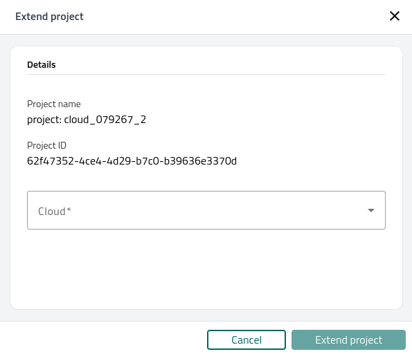 Clicking on Extend project opens a modal window allowing you to make an existing project available in another region: